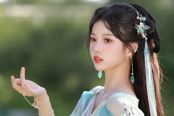 那只蝴蝶刺绣在领口闪烁着金属光芒,极其特殊。