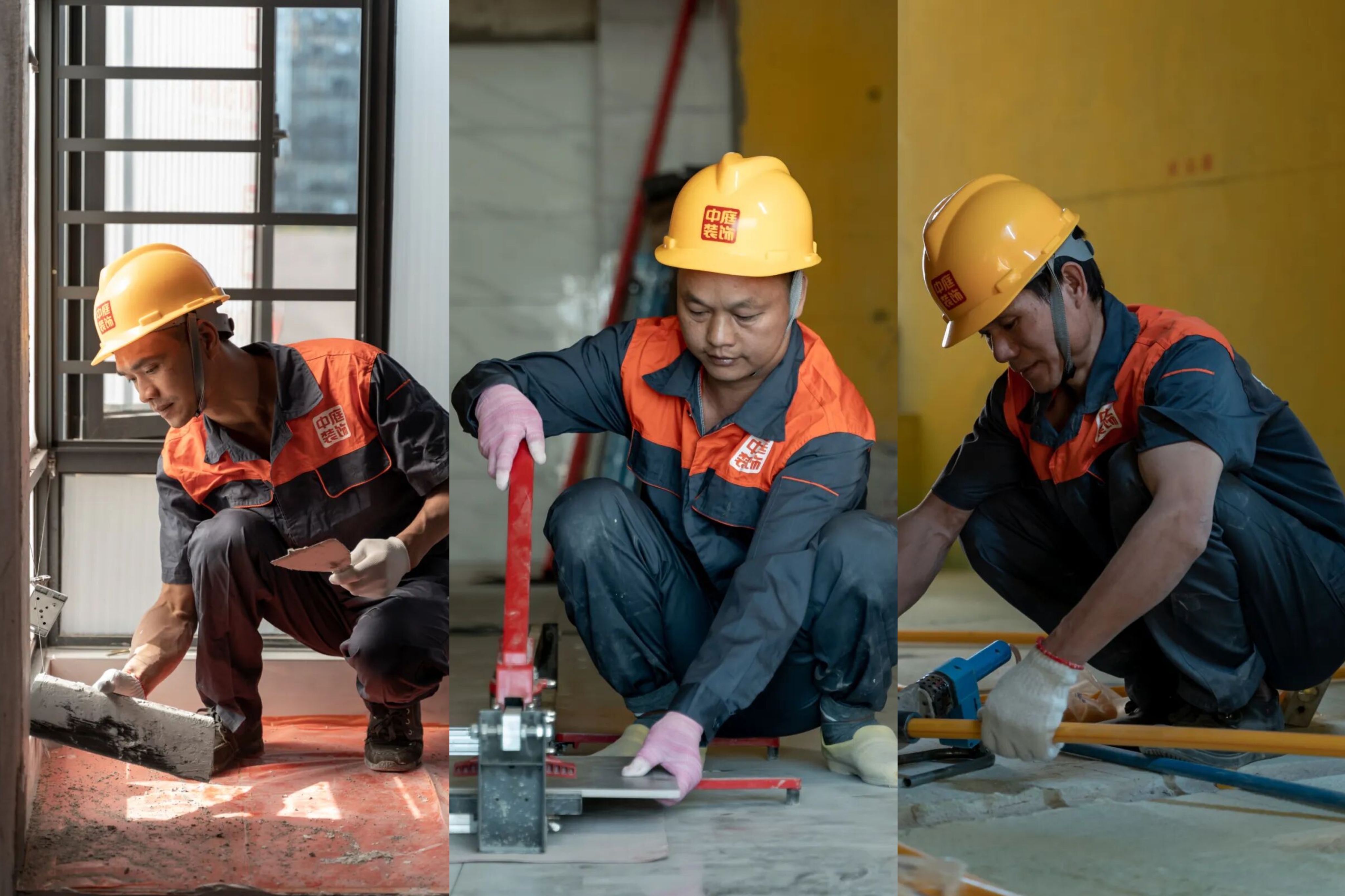 传统家装施工工艺参差不齐,管理也很困难,导致家装工程质量难以把控,客户满意度普遍较低。为了更好地适应社会及行业的发展需求,中庭装饰敢于培养自己的工人团队,目前已经实现100%自有产业工人,规模多达800余人,统一管理,统一培训,培训合格方能持证上岗。