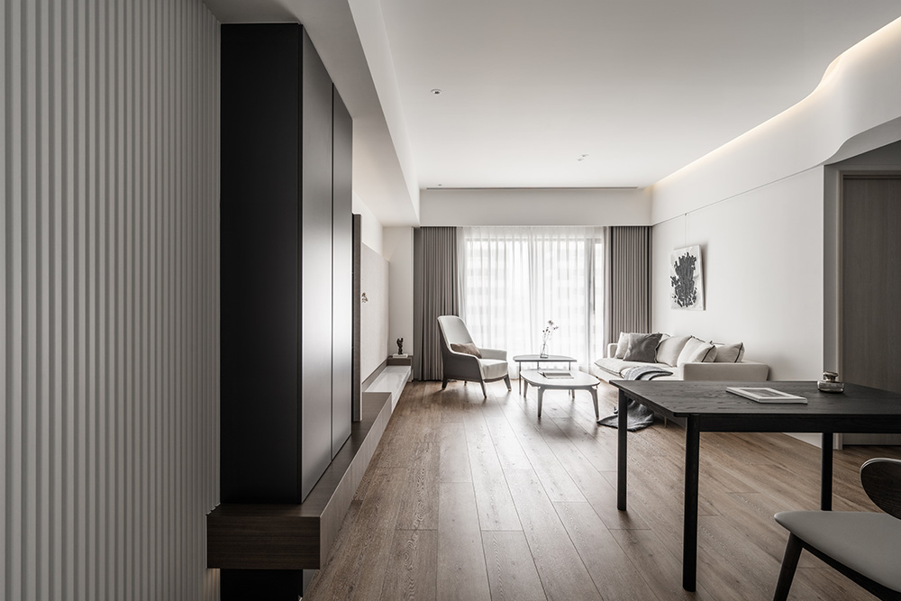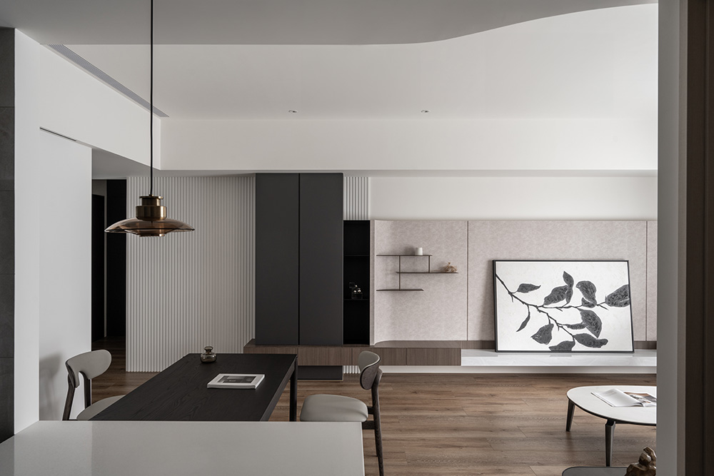 当寻常日子常常流转在繁景百态时,慢下来就有一种包容力,接住了喧嚣、安住了心绪,在 打造的现代风格宅邸中,便勾勒出一地,扬着缓慢步调,却带入深邃风景的空间,正实现了屋主一家人,期望每天回家,就像入住饭店般舒心自在。