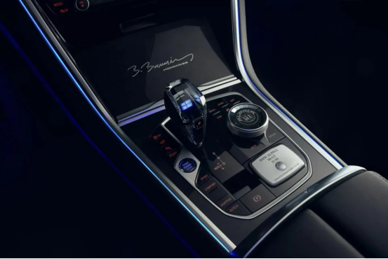 进入车内,全车采用Merino皮革进行包裹,并配有木制装饰。最重要的是,这款B8 GT的内饰还有Burkard Bovensiepen的签名装饰。购买Alpina B8 GT的买家还回收到一款特殊的Carl F.Bucherer 43mm手表,这块手表配有蓝色表盘、黑色皮革表带、Alpina标志,以及在手表背面还有经典的轮圈图案。
