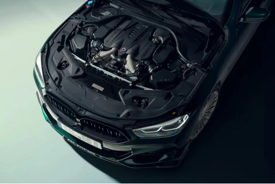 文章开头已经说到B8 GT是Alpina有史以来性能最强大的车型,那么其搭载的机器必然也会得到提升。经过调教后的4.4L双涡轮增压V8发动机,能够输出850N·m的扭力,爆发出643匹马力。相比起BMW M8在动力上要多出101N·m扭矩和高出17匹马力,只不过在0~100kph加速上,B8 GT要稍微落后0.1秒,B8 GT加速时间为3.3秒。但是,如果对比极速来说,M8要落后于B8 GT,就算选择了高限速器,也只能将速度提升到305kph,而B8 GT则可以一直加速到330kph。除此之外,Alpina还表示,B8 GT还配备了新的排气中段消音鼓,能够改善V8引擎的声浪。