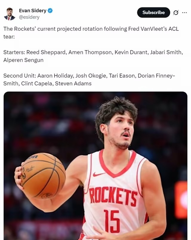 火箭队记杰克逊-加特林表示:“我很怀疑火箭队真的会让谢泼德打先发这种选择,保守起见新赛季开端火箭队更可能让阿门打一号位,芬尼史密斯或伊森两人其中之一进入先发。”