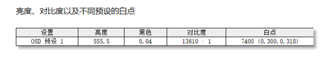 最大亮度部分实测555.5nits,比标称的 500nits Typ. 高10%。