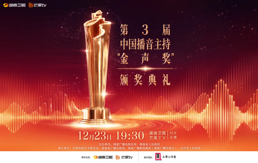 由国家广播电视总局和湖南省人民政府共同主办,中国电视艺术委员会、湖南省广播电视局、湖南广播影视集团(湖南广播电视台)承办,湖南卫视王琴工作室涂承书创新小组制作的《第3届中国播音主持“金声奖”颁奖典礼》将于今天19:30在北京卫视、吉林卫视、东方卫视、江苏卫视、浙江卫视、山东卫视、湖北卫视、湖南卫视,以及芒果TV、爱奇艺、优酷、腾讯视频、咪咕、哔哩哔哩、抖音等网络视听平台同步直播。