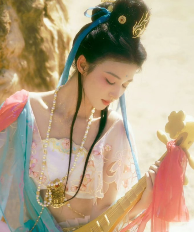 陈都灵的观音之美在于“清冷”二字。高高的发髻衬得本就精致的五官看起来只有巴掌大,细腻莹白的肌肤从内而外透着疏离感。当她身着素雅纱衣,对月拈花或凭栏远眺时,那种不食人间烟火的仙气仿佛是从古典画卷中缓步走出的神女。张雅钦的观音造型则走的是古典路线。她曾拍摄一组复古白衣大片,无论从妆容设计还是服装质感都展现出古典美人的风采。昏暗灯光下,她精致的五官辨识度更高,眉间的红色印记神性十足,很有八六版西游记中观音的质感。王楚然的观音扮相是从壁画上走下来的神祇。敦煌风绚烂的色彩在她身上得到了最好的呈现,闭着眼睛拨动琵琶的样子像极了神圣的祭祀。这种华丽又兼具神性的观音扮相较为少见,衬得她本就明艳的五官愈发精致,给观众一场视觉盛宴。