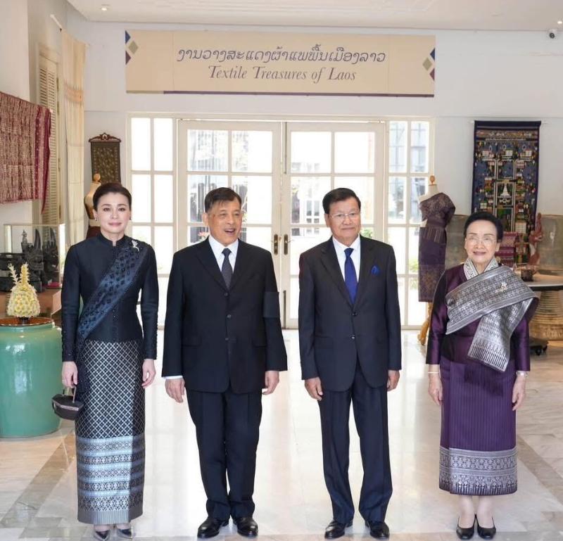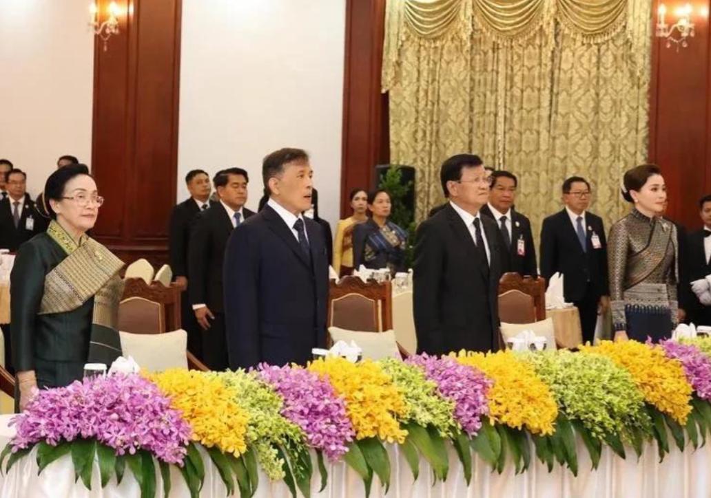 也正是因为物质条件好,他的妻子比他年龄小,举止得体又大方,在老挝宴会上的泰国王后穿着泰式礼服裙,美出新高度!