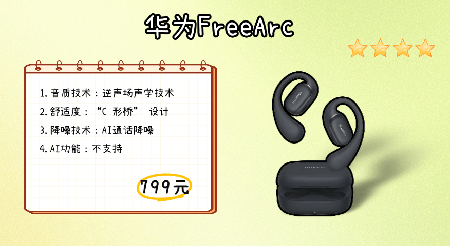 华为FreeArc采用C形桥耳挂设计,平衡佩戴稳固性与舒适度。开放式结构确保用户在聆听音乐时能持续感知环境声,提升户外通勤与运动时的安全性。