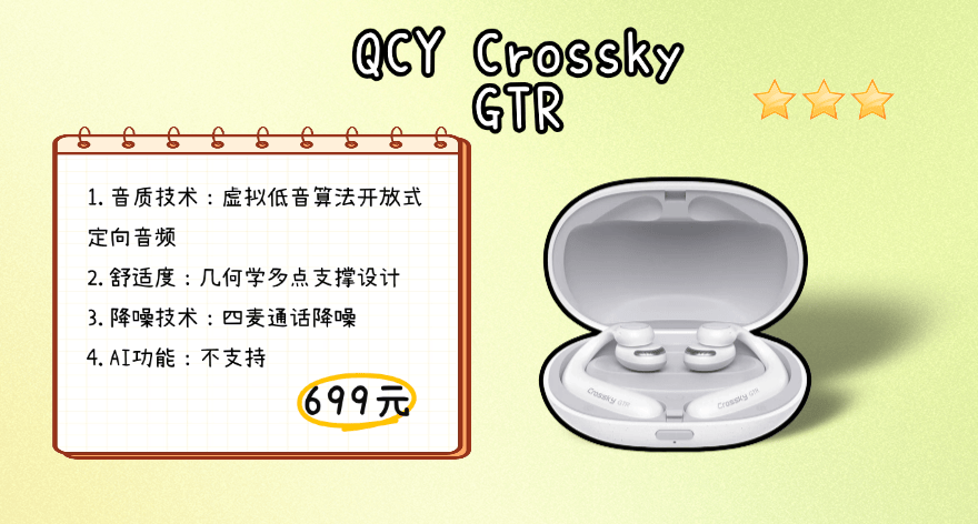 QCY Crossky GTR它是一款用通话配置和扎实的硬件,适合那些非常看重通话清晰度,且对续航要求不极致的通勤和轻度运动用户。