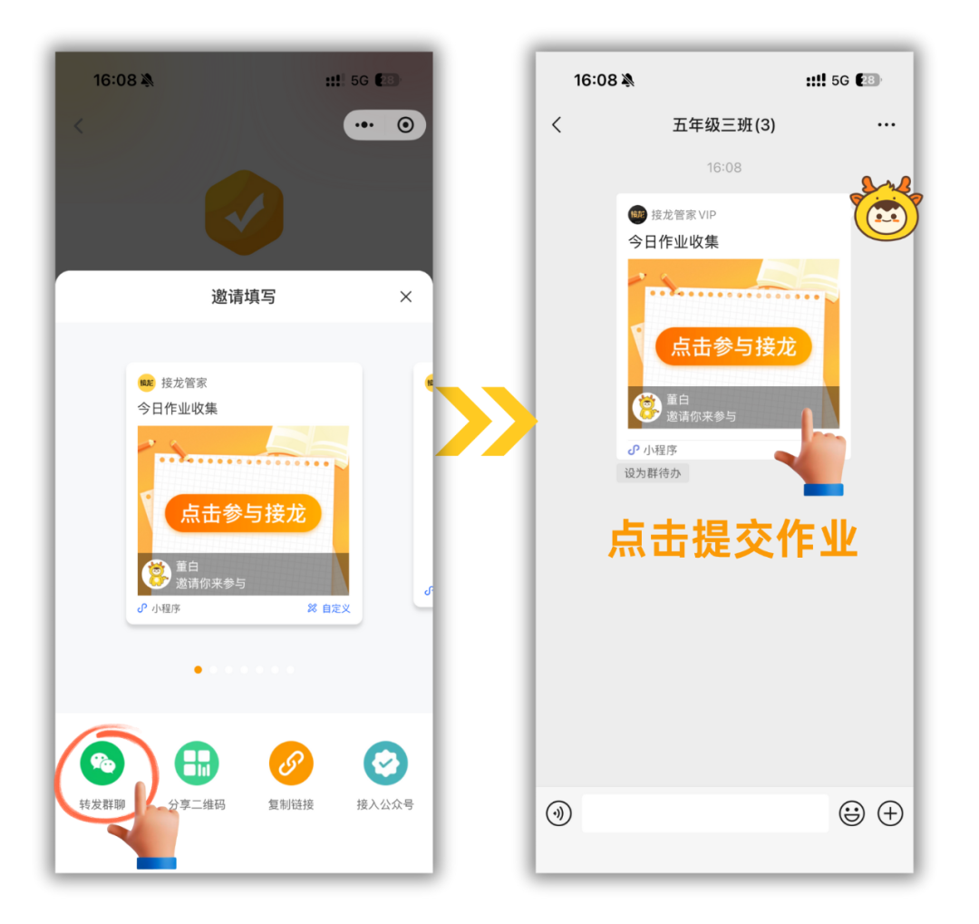 编辑完成后,转发到群聊,学生点击即可提交作业。