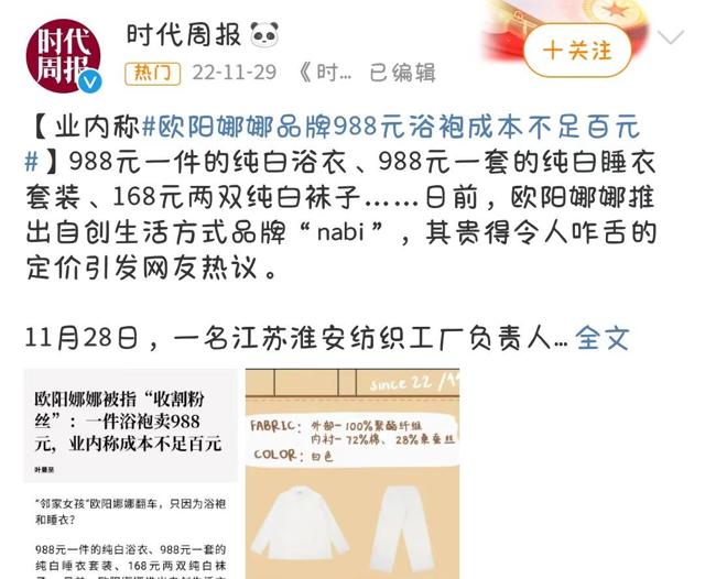 粉丝都是看着欧阳娜娜长大,并且在宣传自创品牌时,一再强调品牌布料都是最舒服最适合的面料这介绍也直接拉高了粉丝们对品牌的期待值。