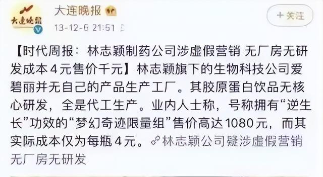 借着自己的不老容颜,2018年,林志颖推出了一款“胶原蛋白精华液”的产品。