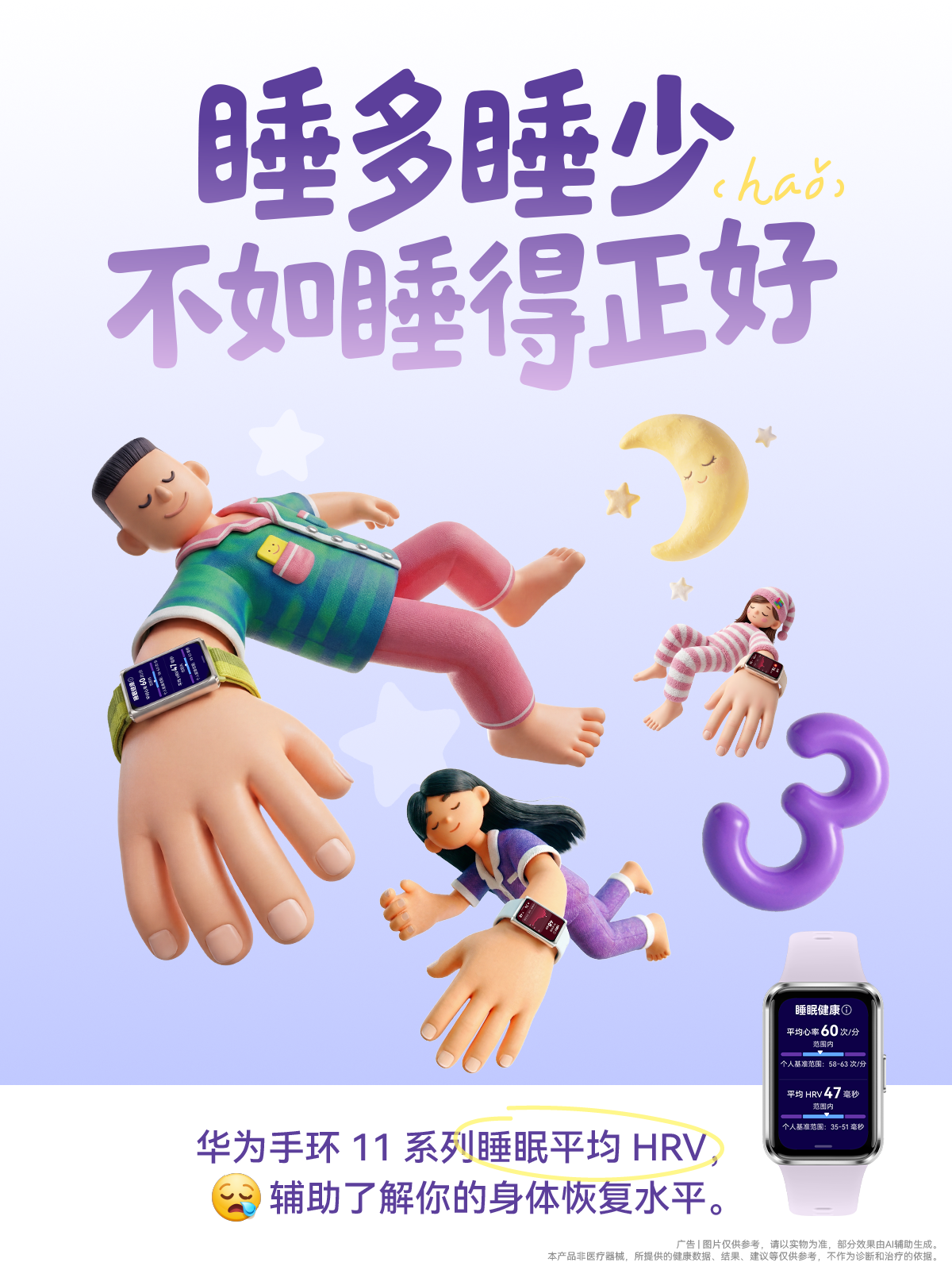 在健康监测维度,华为手环 11 系列实现了从“睡眠管理”到“全天候身心关怀”的升级。新增午睡小结功能成为本代亮点——手环能够自动识别并分析午睡时间,给出详细的睡眠质量报告,甚至在跨时区时触发午休提醒,帮助用户调节作息。夜间睡眠监测则通过高性能传感器,对平均HRV、心率、血氧等参数进行多维分析,并搭配腕上睡眠甘特图,让用户直观掌握睡眠结构。