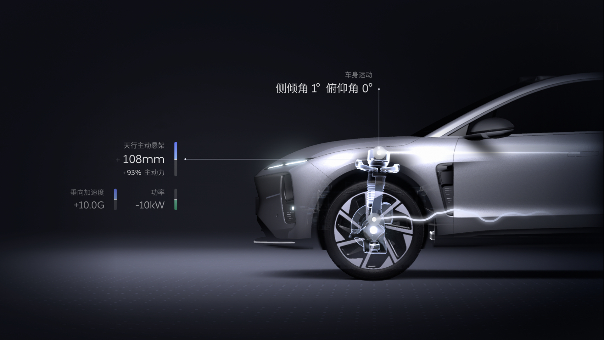全主动悬架不论是过减速带还是飞坡都可以抑制车身摇晃和震动,配合预瞄和车端感知,真正做到过坑过槛不抛跳。在弯道上则可以时刻保持从容优雅,不管是乘客还是司机都不会狼狈。