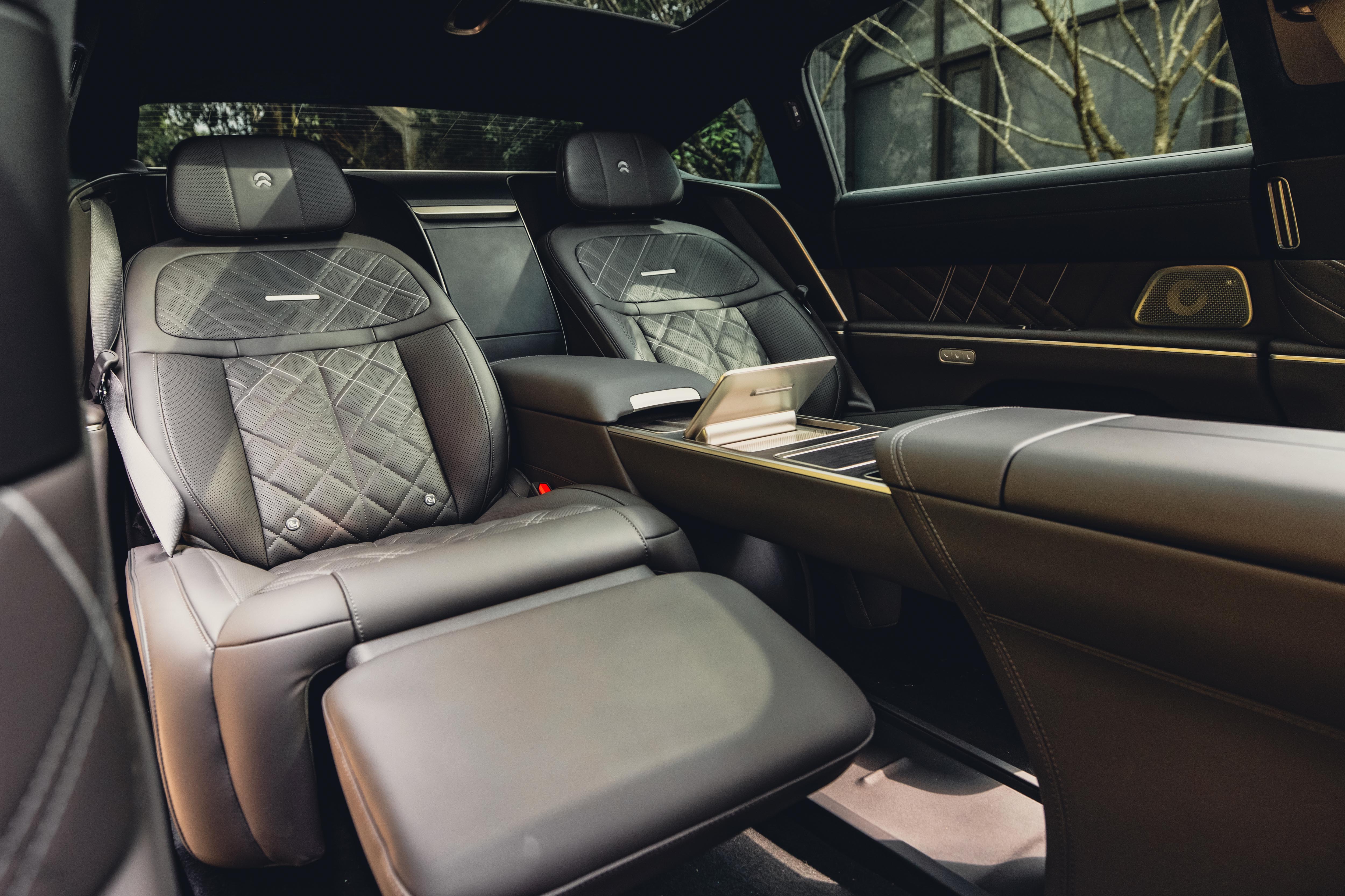 光自研的座椅骨架就拥有24项专利技术,后排的飞航头等舱座椅简直就是商务会客厅里的大沙发,同时后排还有着开阳通透的空间感、专属性和私密性。
