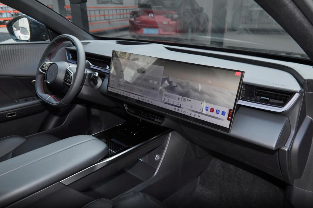 坐进马自达EZ‑60车里,第一感觉就是宽敞又舒服。它用的是飞翼环抱悬浮座舱,T型环抱式设计,再加上一体式大屏,整体很有高级感。这块屏在同级里算很薄、边框很窄的那种,还支持自适应调光,大太阳底下也看得清清楚楚,而且尺寸是经过安全验证的,完全不影响气囊正常弹出。