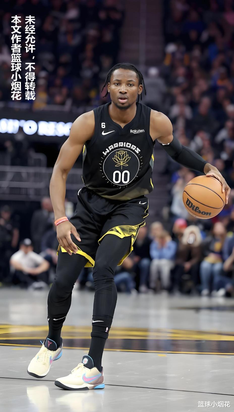 乔纳森-库明加,出生于2002年10月,还有仨月满23岁,他2021年首轮第七顺位被勇士选中新秀,前两年基本上在勇士打替补,第三年逐步坐稳首发,整个赛季出战了74场,其中46场首发,场均能打26分钟,得到16分5篮板2助攻的数据,投篮命中率53%,当时的库明加还不满22岁,能有这个表现,明显应该是球队重点培养的好苗子。