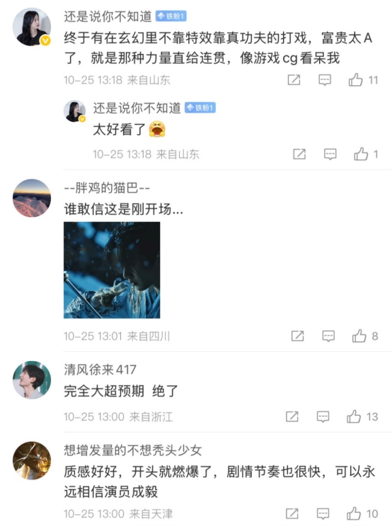 开播仅10分钟,社交媒体上就涌现大量好评:“节奏紧凑不拖沓”、“武戏丝滑,文戏动人”、“这质感稳了”!成毅用实力再次证明,好演员就是最好的品质保证,也用一部部佳作夯实了“成毅出品,必属精品”的口碑。