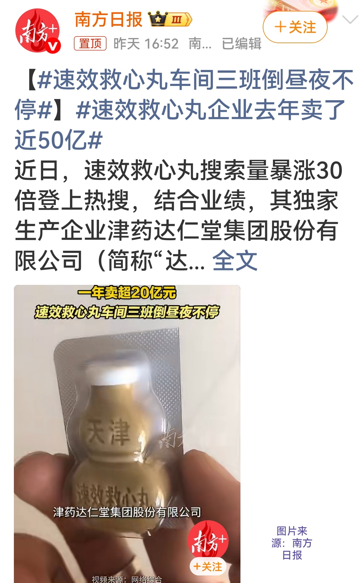 #速效救心丸车间三班倒昼夜不停 #速效救心丸企业去年卖了近50亿 #全民健康焦虑