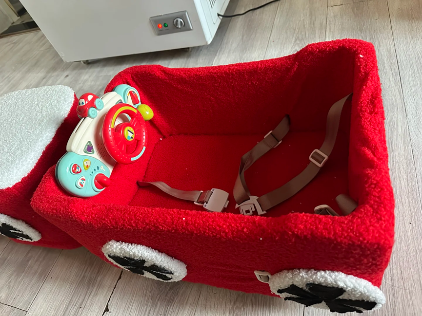 做好之后还可以在小火车上面另外给小宝宝加上一套安全带,