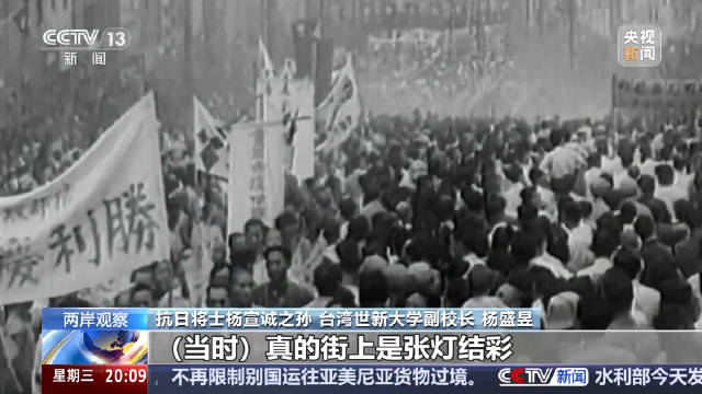 纪录片《台湾1945》画面显示,民众打出“欢迎国军”“台湾是我们的祖国”等横幅,部分家庭甚至将日本殖民时期的“太阳旗”撕毁焚烧。台湾义勇队成员参与升起光复后第一面中国国旗,18岁的郑坚形容“充满力量,要为台湾民众多做好事”。