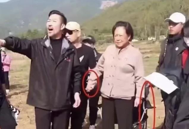 再看斯琴高娃。拍戏现场,身边总需要有人搀扶。腿脚不便,脸上的皱纹也深得像年轮,整个人都被岁月打磨成了老态。