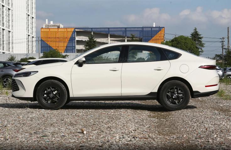 车身侧面的设计以饱满柔和为主,腰线平滑灵动,自B柱后方向上挑起,营造出波浪感,同时车顶线条趋于缓和,保证了后排头部空间的宽适感。值得好评的地方是门把手区域,秦PLUS DM并未使用市面上流行的隐藏式把手设计,传统机械把手兼顾了美观和实用设计,遇到突发情况时,拥有更多的安全冗余。