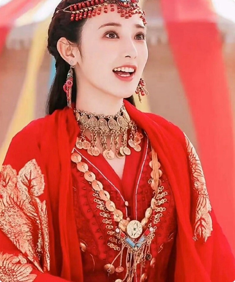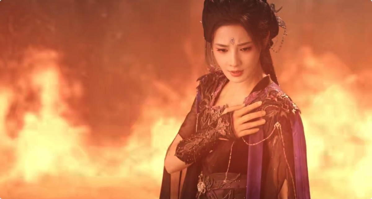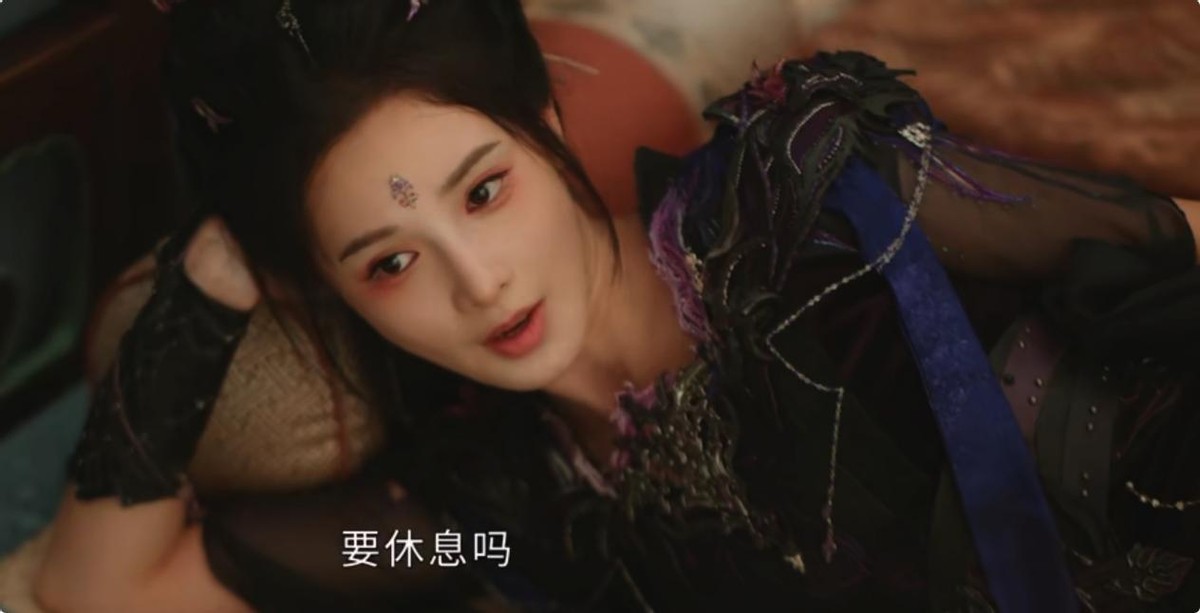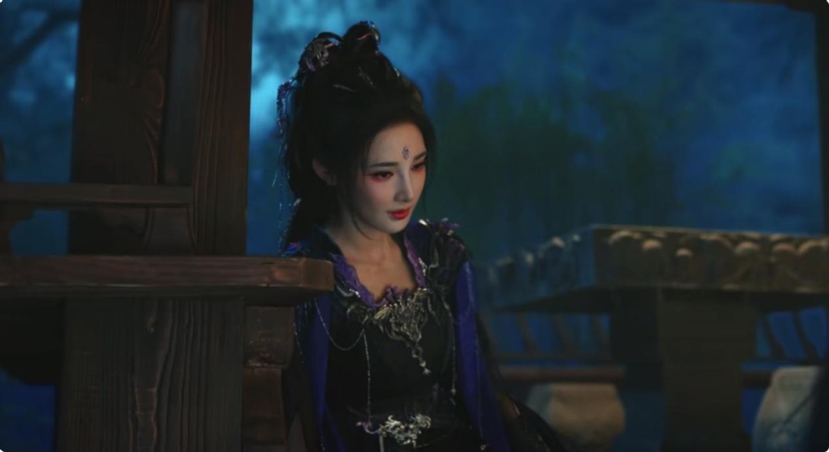 女主慕雨墨的妆造更是绝了,深紫、流苏、金饰、披发,既有异域艳感,又保留武侠的肃杀感,视觉冲击直接拉满。
