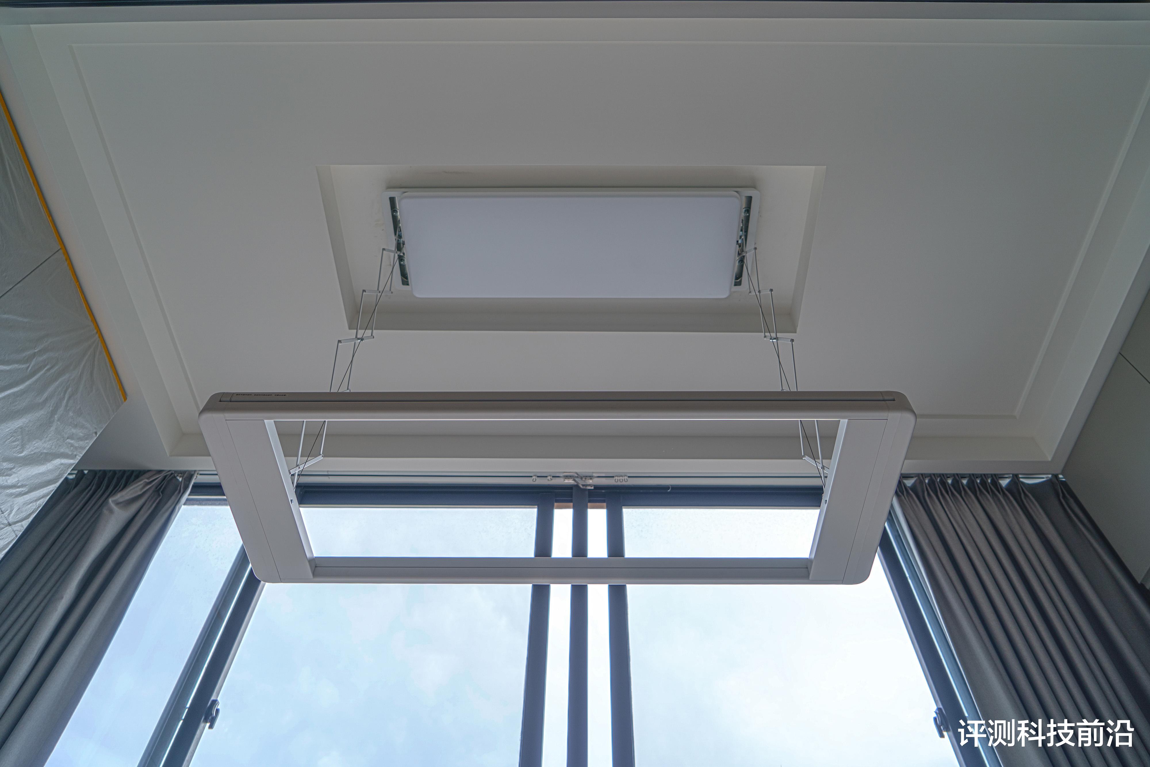 ▼总体来说这款米家智能晾衣机2Pro非常适合现代大部分装修风格,个人认为嵌入式安装美观度最佳,可升降的设计也可以让晾衣机日常存在感降到最低,晾晒一些短的东西直接升到顶,不但可以避免碰头,还能让阳台保持开阔视野和自然光照明,开启灯光后,让你在阴雨天或夜间也能感受高素质光照,让你的阳台不仅仅是晾晒作用,更是休闲娱乐点位的第二选择,这不是很舒服吗