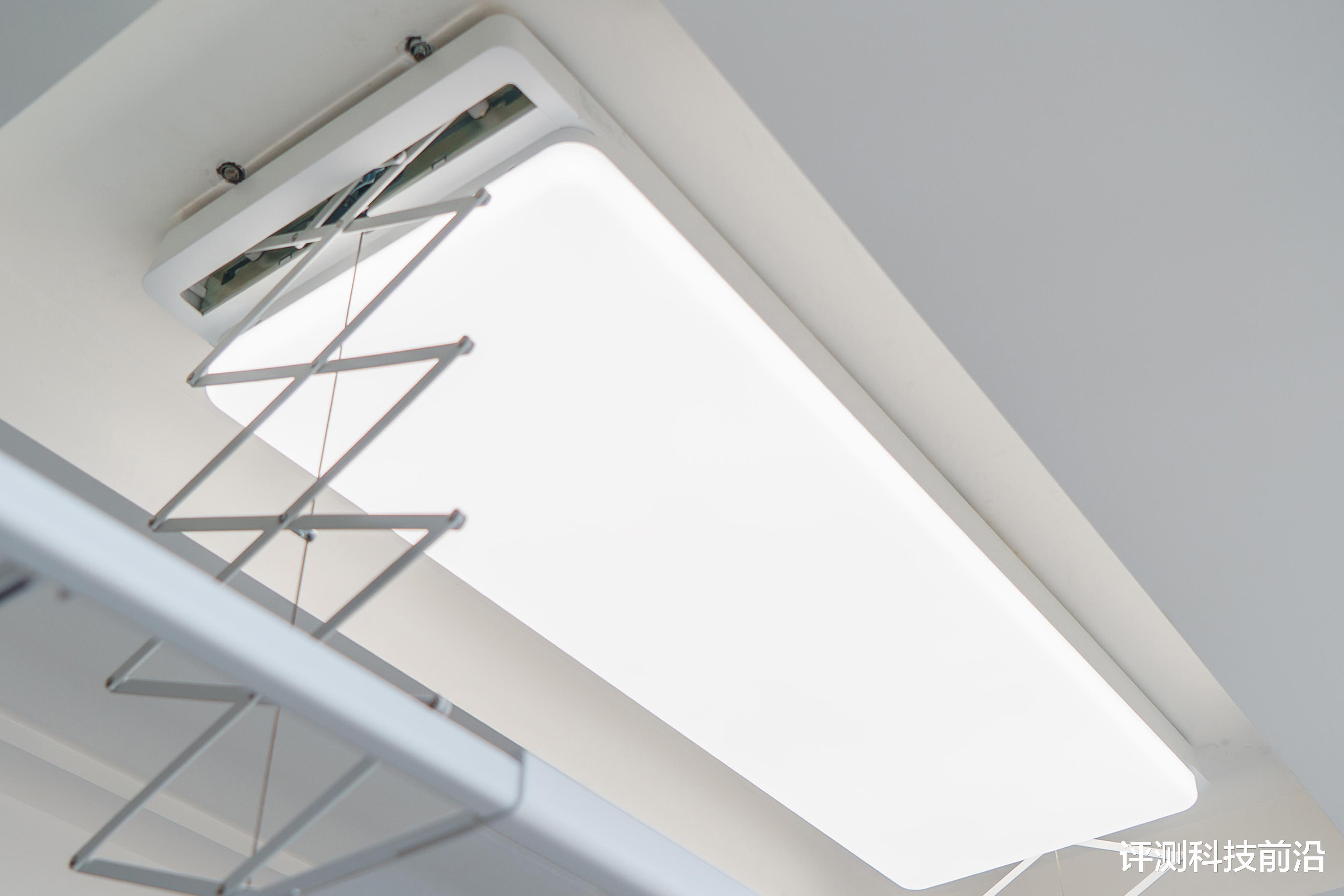 ▼亮度也是非常给力(肉眼看起来比照片效果亮许多),并有3D曲面穹顶灯罩的加持,整体光线非常均匀柔和,新装修的朋友如果准备安装这款米家智能晾衣机2Pro,那你前期就不用考虑阳台需要安装什么灯具了,它就是你的阳台主灯了!