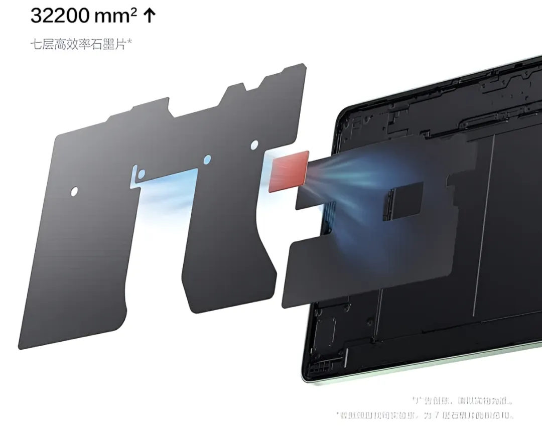 32200mm²超导石墨散热,覆盖CPU、充电芯片等关键区域,实测连续游戏1小时机身仅42°C(室温25°C),告别“铁板烧”。