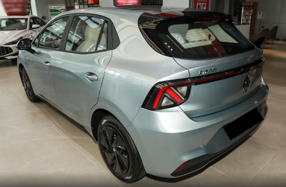 车身侧面没有太多设计亮点,加入上下两根立体腰线后看起来比较硬朗,搭载全新熏黑轮圈造型。车尾也是比较有特色的部分,贯穿式尾灯将箭头状尾灯连接在一起,先不说美观与否,但辨识度高确实是真的,看起来有种赛车的感觉。此外,名爵MG4车长4395mm,轴距2750mm,优于竞争对手海豚,预示着该车在空间方面有不错表现。