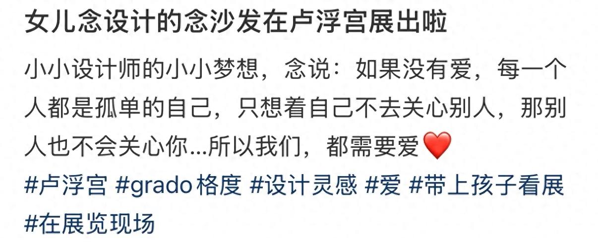 念念小小年纪就有作品能去到卢浮宫参展,真的太有才啦。话说“念沙发”三颗心的造型确实很有创意呀,关键是还很好看,看来念念在设计方面还是有一定的天赋呀。