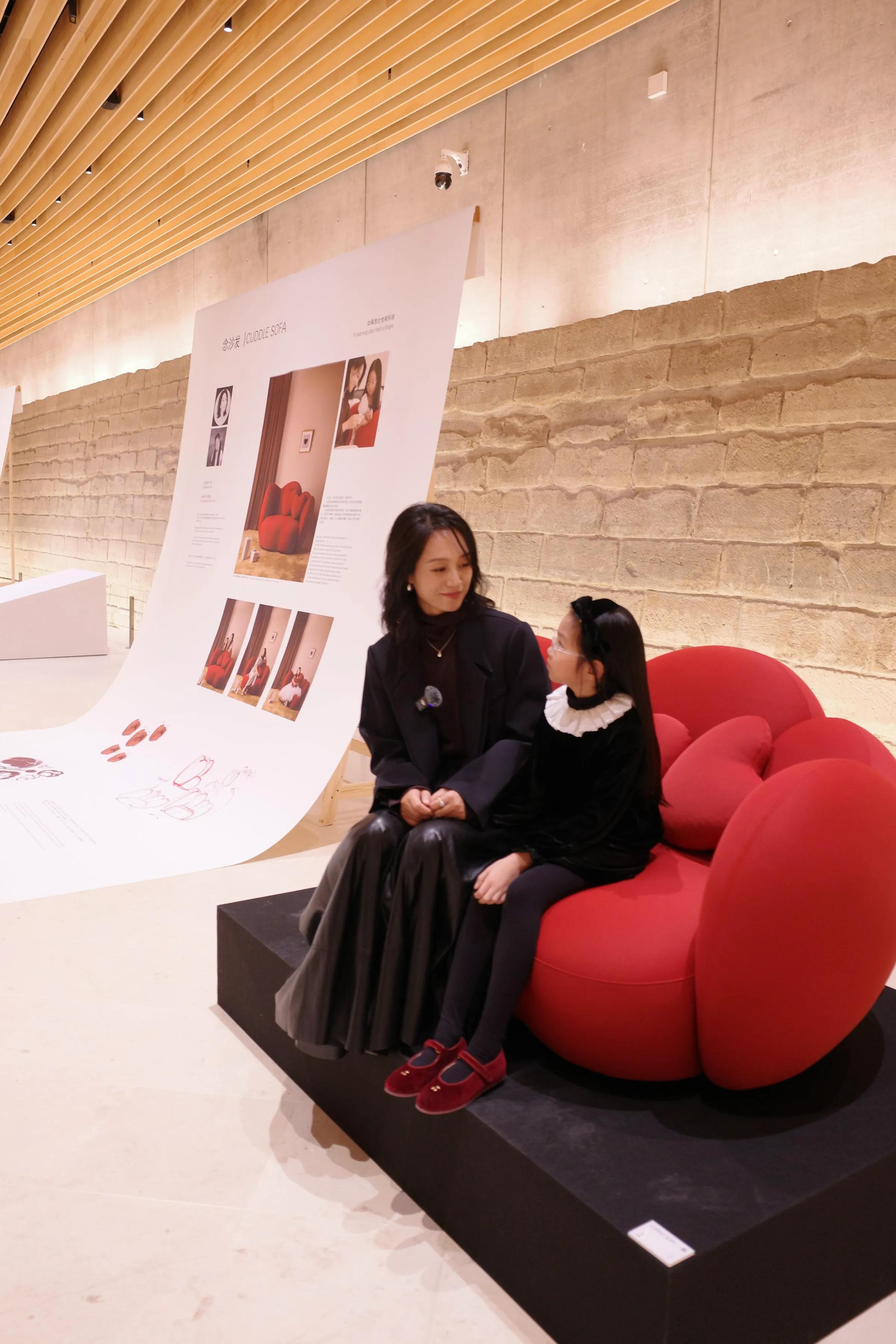 母女俩去到展会现场,还坐在“念沙发”拍了合影留念,朱丹看着女儿的眼神爱意满满,想必很是为女儿感到自豪。