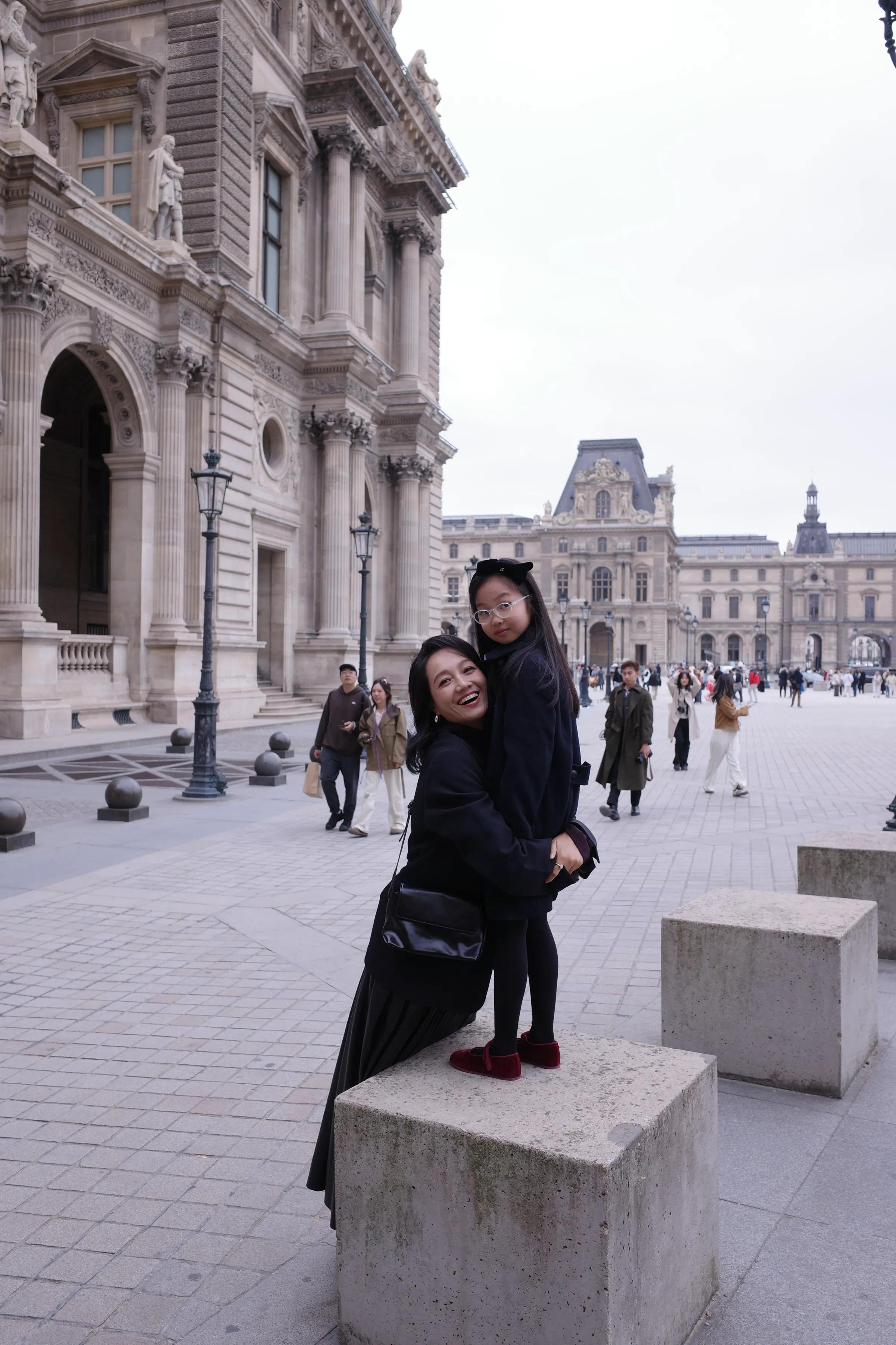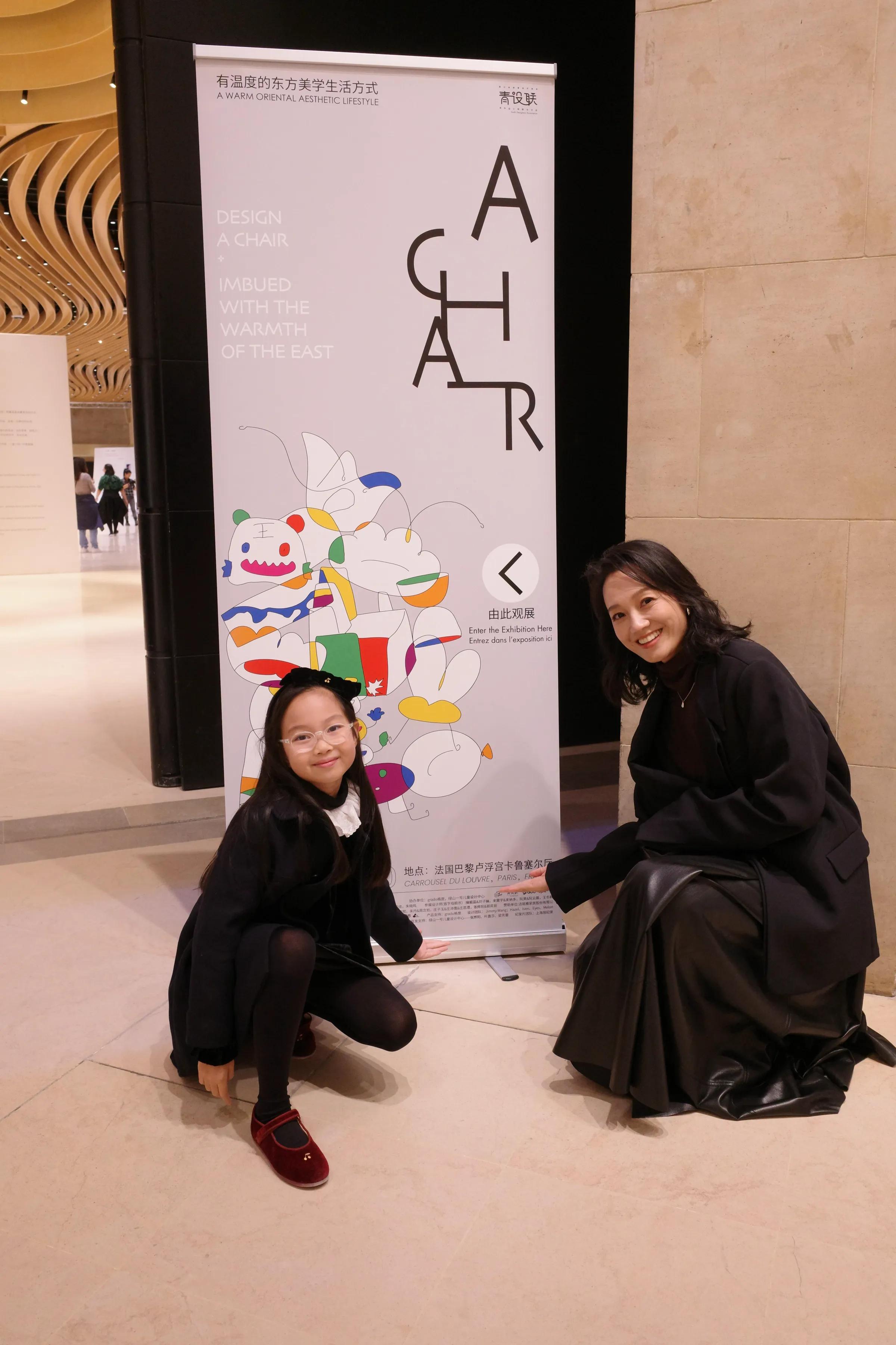 朱丹在社交平台晒出和女儿周念如一起去巴黎卢浮宫看展的照片,朱丹女儿设计的“念沙发”也在卢浮宫展出。