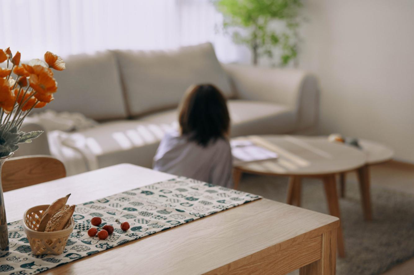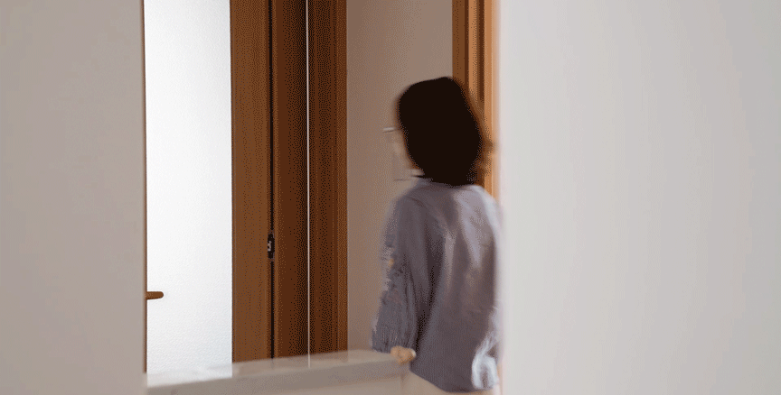 客厅看向餐厅视角,LDK一体化的布局模式,完全释放了空间尺度。这样不仅改善了室内的通风采光环境,也让空间与空间之间有了更多的互动性。