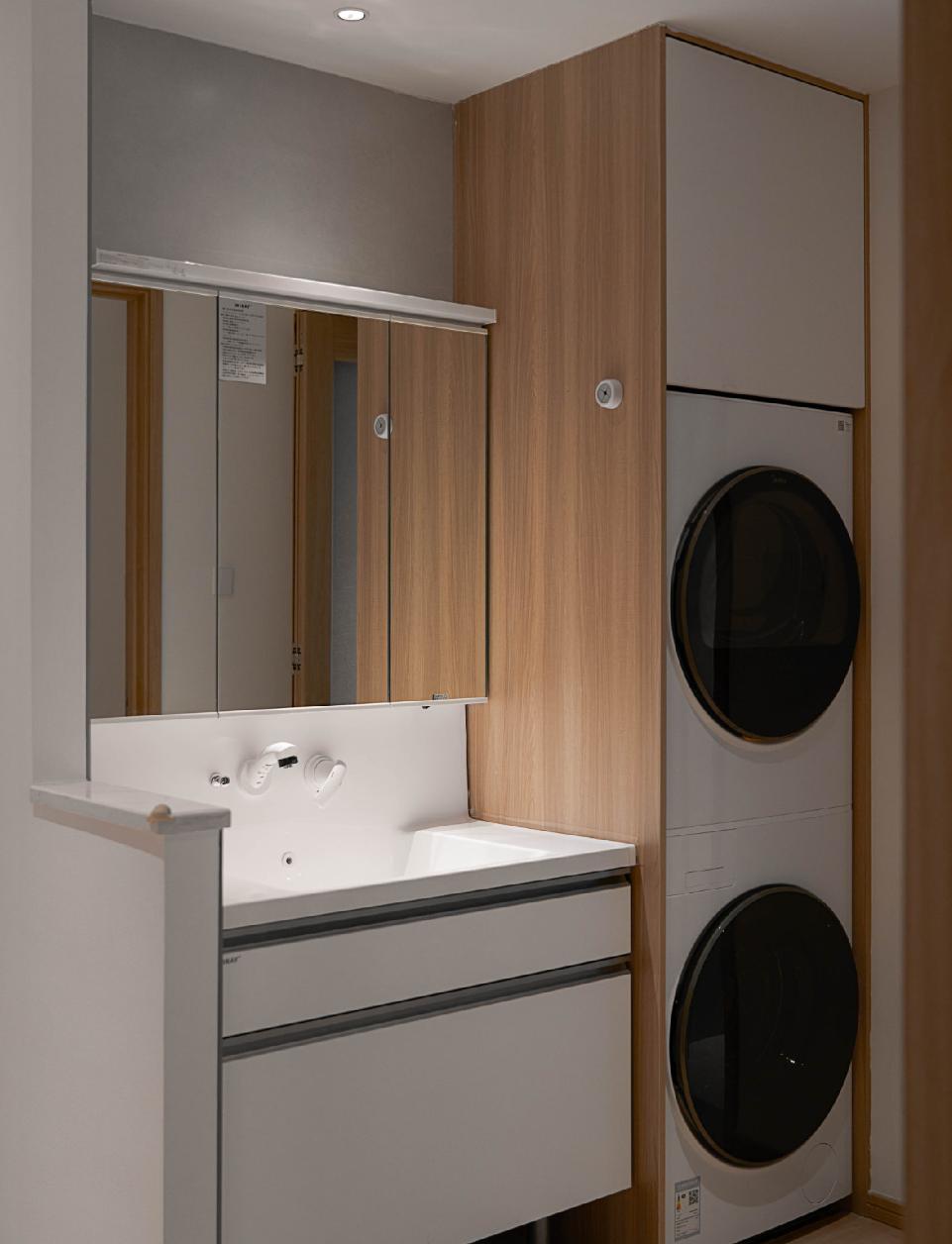 原主卫做了干湿分离设计,并在干区融合了洗烘设备,让生活使用更加高效。而折叠玻璃门设计,也节省了内部的面积。