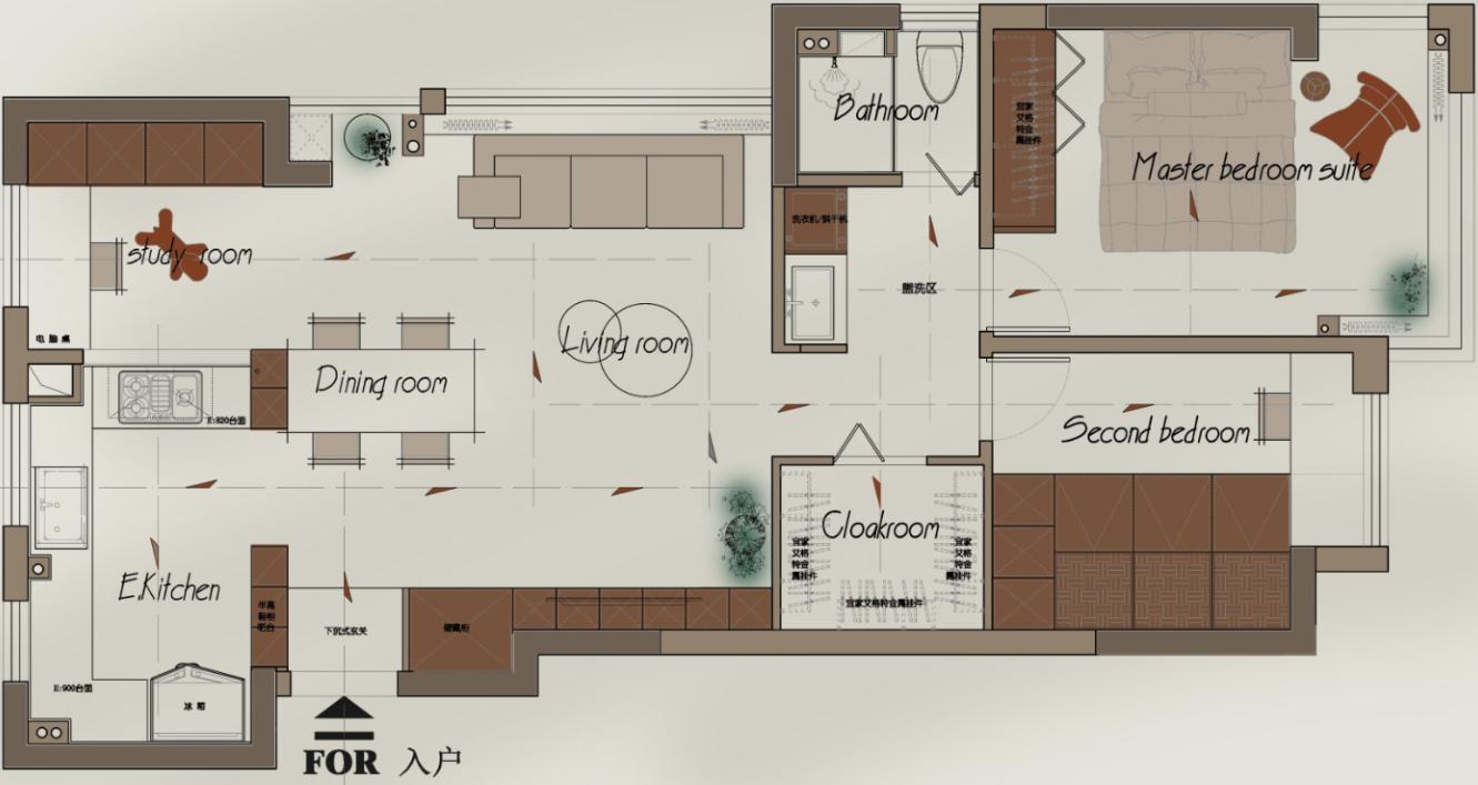 2、书房采用开放式设计,与客厅完全互通。