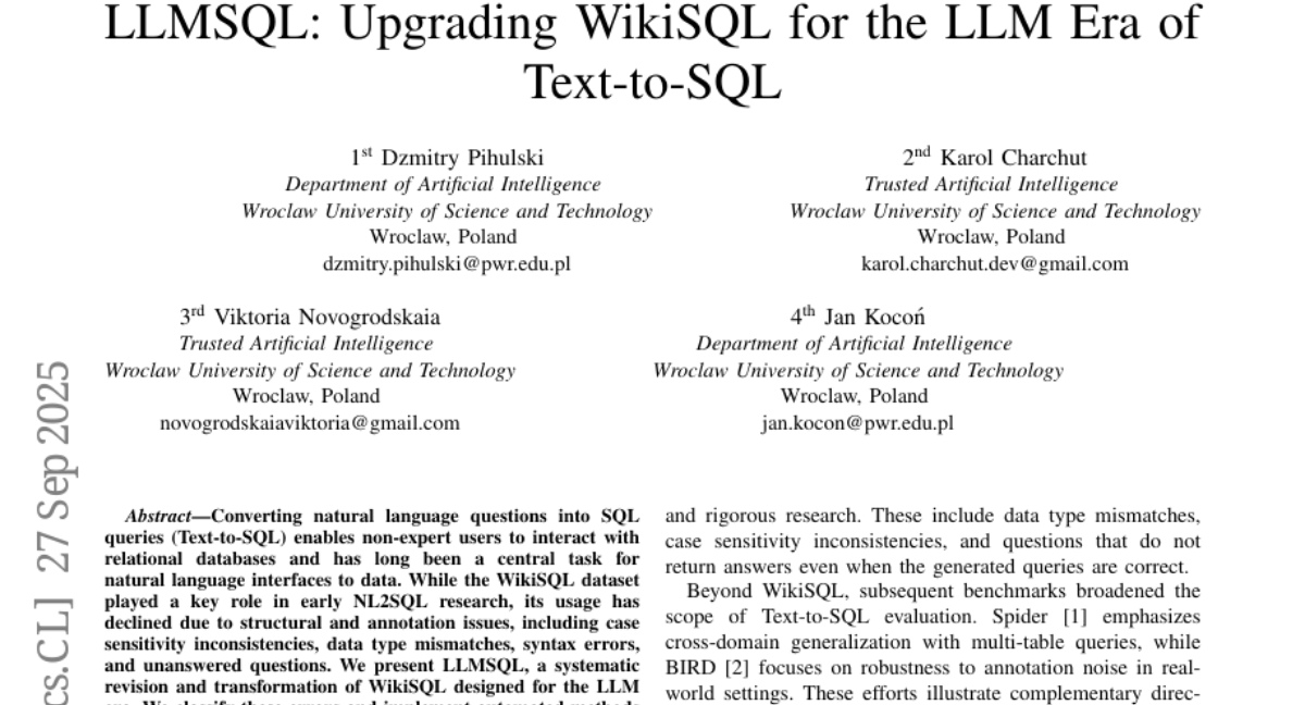这个研究团队就像是数据世界的翻译专家,他们重新改造了一个经典的数据集WikiSQL,让现代的大语言模型能够更好地理解人类的自然语言问题,并准确地生成对应的SQL查询语句。简单来说,他们让计算机变得更加聪明,能够听懂人话并准确执行数据查询任务。