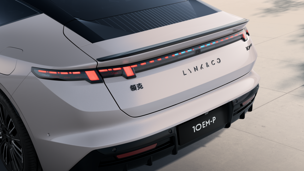 领克10 EM-P的设计语言源于品牌标志性的The Next Day设计理念,这套语言的核心在于打破常规,通过创新的线条与型面构建出独特的品牌辨识度。车辆前脸最引人注目的是那对"Y"型破晓之光日行灯,它巧妙集成了示宽、日行和转向三种功能,在确保安全性的同时,极大增强了前脸的视觉张力与未来感。车身侧面的线条如同流体雕塑般流畅,26.5度的超跑级A柱倾角与C柱12度的上扬设计,共同勾勒出蓄势待发的运动姿态。车尾部分,饱满的轮拱与扎实的线条凸显出力量感,而全宽式贯通尾灯内部排布着精密的LED光源,点亮后科技感十足,与车头设计形成完美呼应。此外,无边框车门、隐藏式水切以及主动升降式隐藏尾翼等细节的加持,让整车在任何角度下都呈现出赏心悦目的视觉效果。