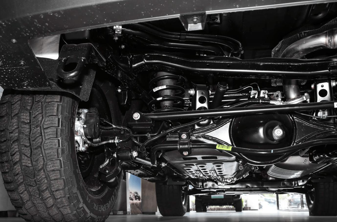 外观上,新车延续标志性机甲美学设计,棱角分明的线条与赛博朋克风格灯组塑造强烈视觉冲击,新增的 "敦煌紫" 专属车色更彰显个性态度,加 1 万元选装该配色还可解锁价值 6000 元的远红外夜视系统,为夜穿等场景提供安全保障。前包围线条改为平直设计后更显稳重,配备的高功率 LED 雾灯照射距离达 31.6 米,是老款的两倍以上,大幅提升夜间越野视野。备胎罩采用快拆设计,单螺栓固定使其拆卸时间缩短近 5 分钟,原厂预留的改装接口更降低个性化升级门槛。