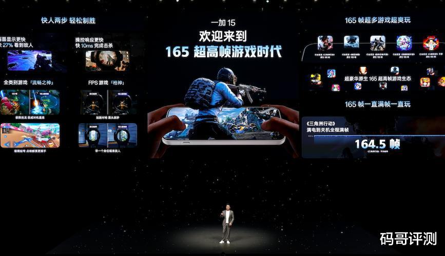 基于强大算力与调度优化,一加 15 拥有行业最强的 1% Low 帧表现,并率先实现主流游戏 165 帧无限满帧运行,推动行业正式进入 165 超高帧时代。在实际体验中,165 帧每秒可比 120 帧多输出 45 帧画面,让玩家更早发现对手、更快完成开镜与技能释放,真正做到「快人两步,轻松制胜」,成为 FPS 射击类游戏玩家的「枪神」首选。