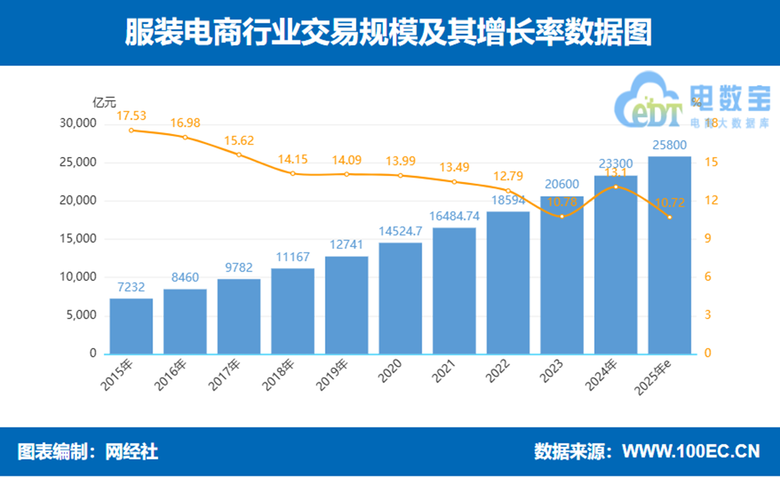 三、平台角色正在转变据电商大数据库“电数宝”显示,2025年我国服装电商交易规模将达到约25800亿元。若我们跳出具体的数据,站在2026年的当下展望未来,会发现服饰电商的竞争逻辑已经发生了根本性的位移。而淘宝这一系列保护原创的动作,恰恰暗合了时代的节拍。