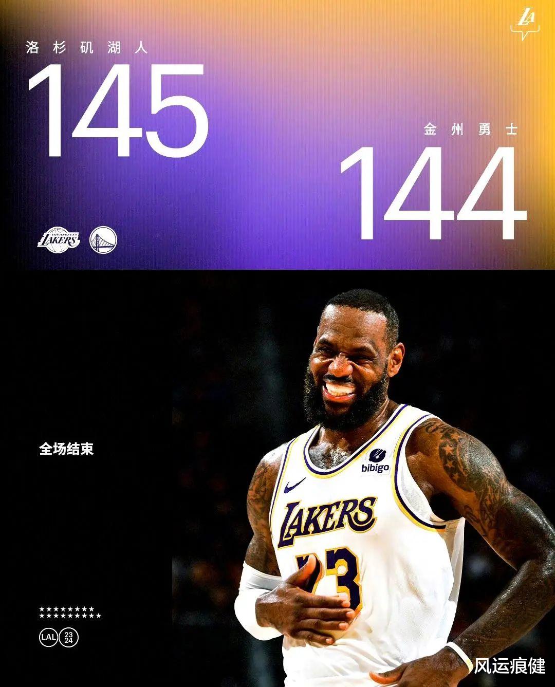 在今天的NBA常规赛焦点战中,洛杉矶湖人队在客场历经双加时,以145-144,险胜金州勇士队。本场比赛,湖人队老大哥詹姆斯狂轰36分20篮板12助攻,并用罚球准绝杀勇士队!