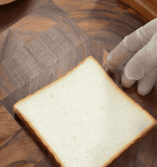 吐司第一步,必须压一压先拿一片吐司,别急着直接放锅里。用勺子在中间压一压,给它压出个小窝,别太狠,压个凹进去的小坑就行,这样芝士蛋黄啥的都不会流得到处都是。