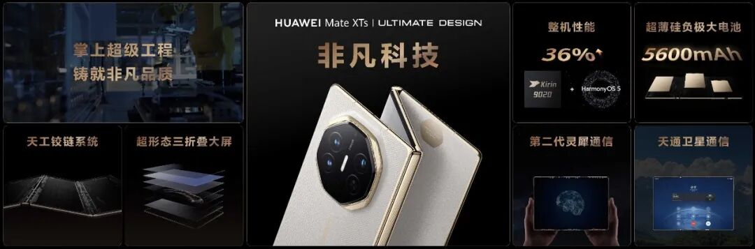 而今,赚足了“面儿”的三折叠,又完成了一次从面子到里子的全面进化。华为Mate XTs 非凡大师震撼而来,继续谱写独属于华为的三折叠狂想曲。
