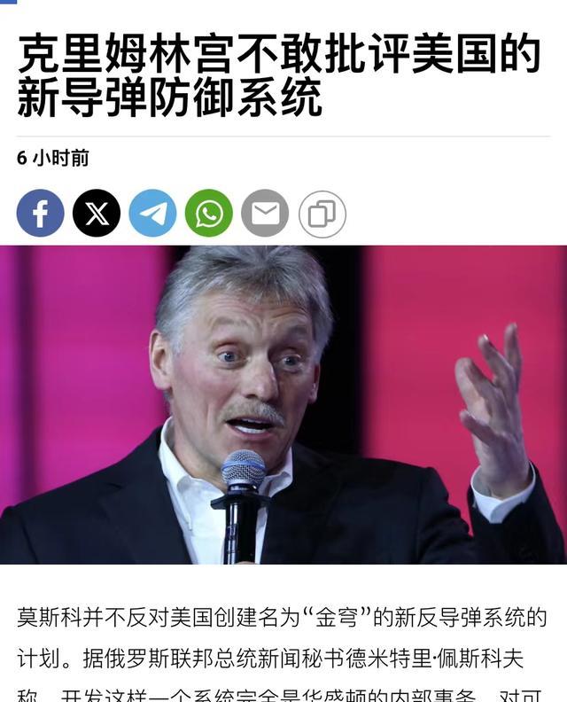 我们还批评美国执迷于谋求自身绝对安全,损害全球战略平衡,还敦促美国放弃金穹。但这些,普京的秘书佩斯科夫更是没提到,相反还说这是美国自己的主权权利问题。