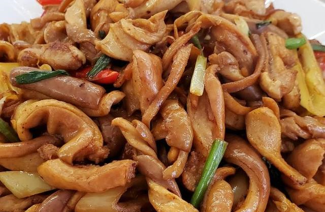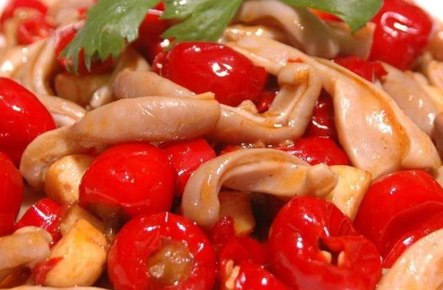 猪肚煮好后,捞出切成条状,备用。锅中加入适量的油,油热后加入辣椒段、大蒜末和生姜末,翻炒出香味。随后,加入猪肚条,倒入调好的酸辣汁,翻炒均匀,让猪肚充分吸收酸辣汁的味道。最后,撒上白胡椒粉和香菜,即可出锅。
