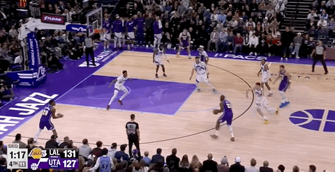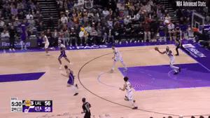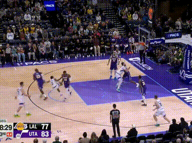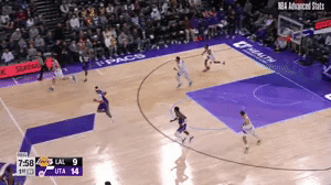 前三节爵士三分球24投14中,很大程度上就是湖人的高位防线太过于疏松,很多时候爵士都不需要二次传导就可以拿到轻松出手机会。