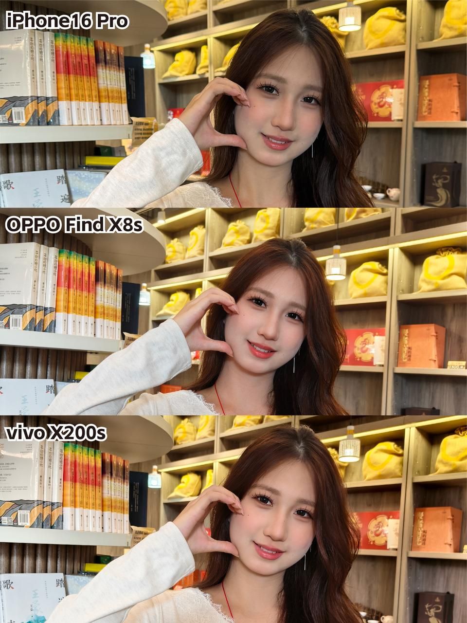 影像体验上两款手机也有不小差别。虽然都是后置5000万三摄规格,但各自对成像效果的调教风格不一样。比如在人像拍摄上,三款手机清晰度都不错,但iPhone 16 Pro很是简单粗暴,vivo X200s则更锐利一些,细节更多。但OPPO Find X8s因为有大师人像算法和LUMO凝光影像加持,人心的拍摄更擅长,看上去气血更足的感觉,观感更接近肉眼所见。