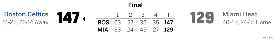 完场凯尔特人147-129击败了热火,也是刷了个大分。